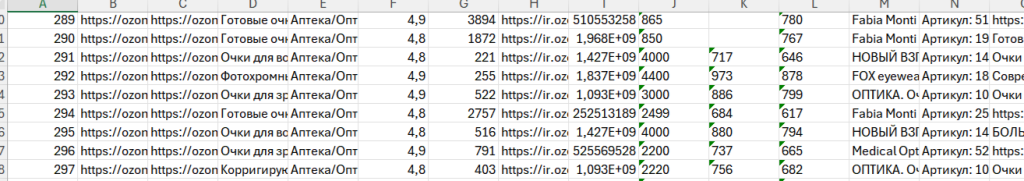 Поле выполнения получается xlsx файл, содержащий в себе информацию по артикулам и названиям, которая может быть использована для актуализации информации по продуктам.