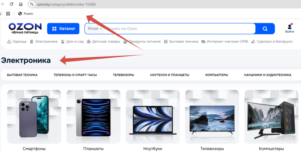Пользователю предоставляется возможность выбора наиболее подходящего для него способа сбора данных: в данном случае по ссылке на категорию.