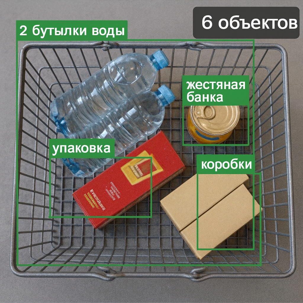Мы выяснили, что список товаров у клиента ограничен определёнными категориями (бутылки, пачки, коробки и т.д.). Это позволило сфокусироваться на распознавании конкретных классов объектов и увеличить точность.